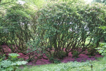 Ein abgeblühter Rhododendron, die Blüten bilden einen dichten Teppich -