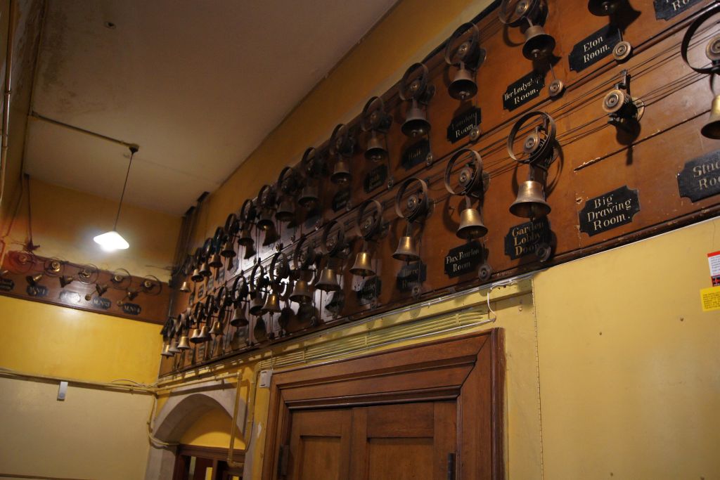 | Das "Alarmboard" - in alle Räume gingen Drahtzüge und wenn jemand