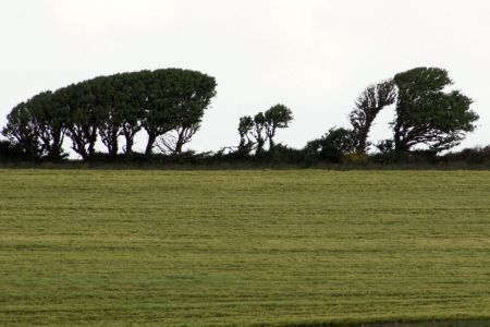 sind die Bäume an der dortigen Küste, die sehr vom Wind geformt werden.